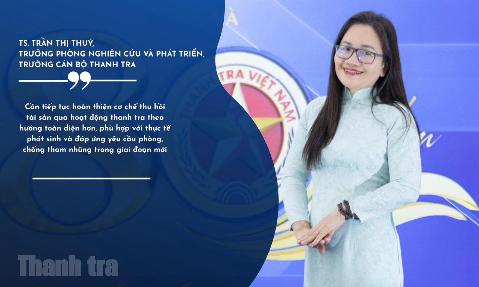Từ thực tiễn nêu trên, theo bà Thuý, yêu cầu đặt ra là cần tiếp tục hoàn thiện cơ chế thu hồi tài sản qua hoạt động thanh tra theo hướng toàn diện hơn, phù hợp với thực tế phát sinh và đáp ứng yêu cầu phòng, chống tham nhũng trong giai đoạn mới. Trong đó, việc mở rộng phạm vi tài sản thu hồi là vấn đề cấp thiết. Khi tài sản bất hợp pháp có thể sinh lợi hoặc chuyển hóa qua nhiều hình thức khác nhau, việc chỉ thu hồi phần tài sản gốc sẽ không đủ để răn đe và không đảm bảo nguyên tắc thu hồi đầy đủ tài sản thất thoát của Nhà nước.
