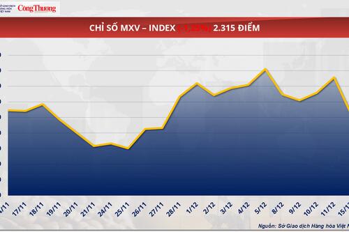 Áp lực bán duy trì trên thị trường hàng hóa nguyên liệu thế giới trong phiên 16/12. MXV-Index khép phiên giảm 1,2%, xuống 2.315 điểm, khi nhóm năng lượng tiếp tục dẫn dắt đà suy yếu, trong khi thị trường đường phát đi tín hiệu hình thành chuỗi giảm giá.