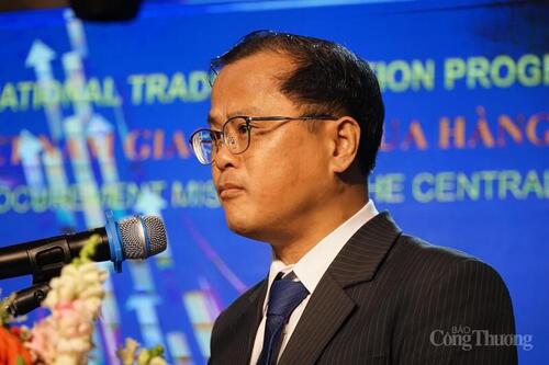 Phó Giám đốc Sở Công Thương Đắk Lắk Nguyễn Hải Triều phát biểu tại Chương trình Tổ chức đoàn doanh nghiệp nước ngoài vào Việt Nam giao dịch mua hàng vùng Tây Nguyên. Ảnh: Vũ Long